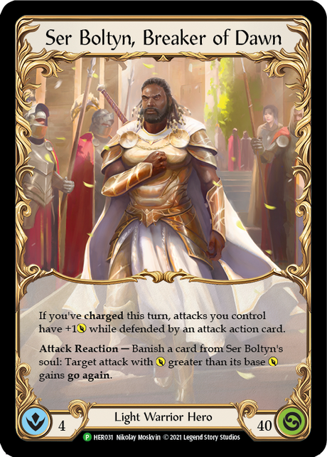 Regular price $100Unit price /UnavailableSer Boltyn, Breaker of Dawn [HER031] (Promo) Cold Foil